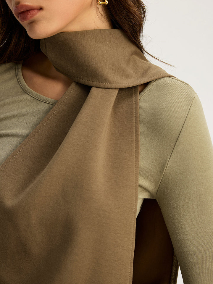 2 in 1 Long Sleeve Halter Neck Belted Maxi Dress