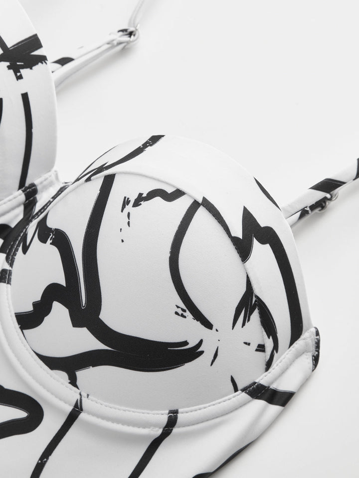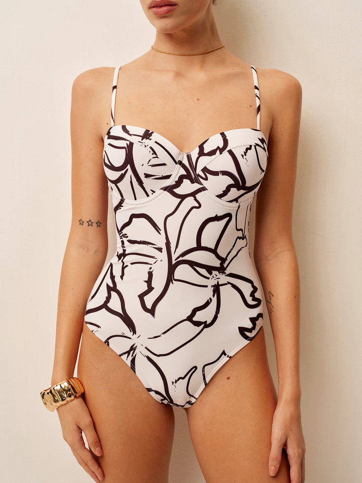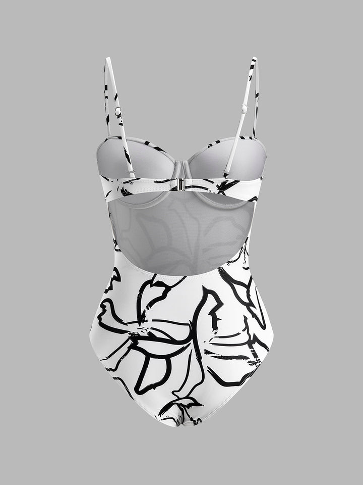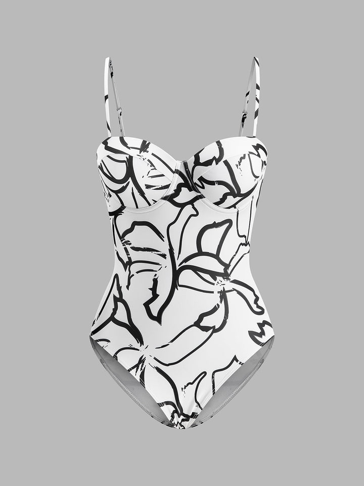 Soyut Baskılı Spagetti Askılı Tek Parça