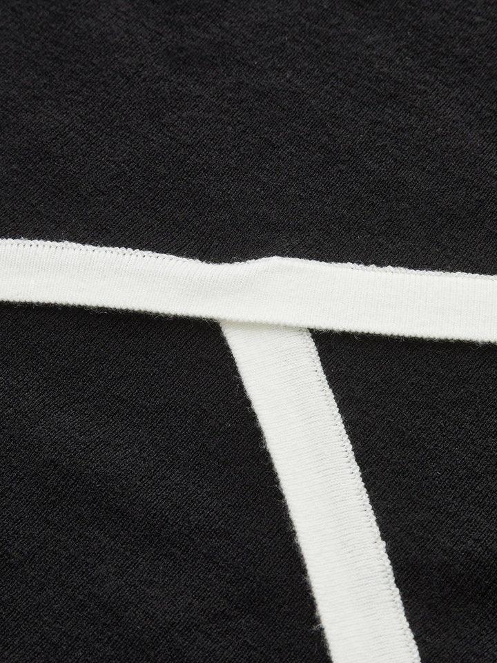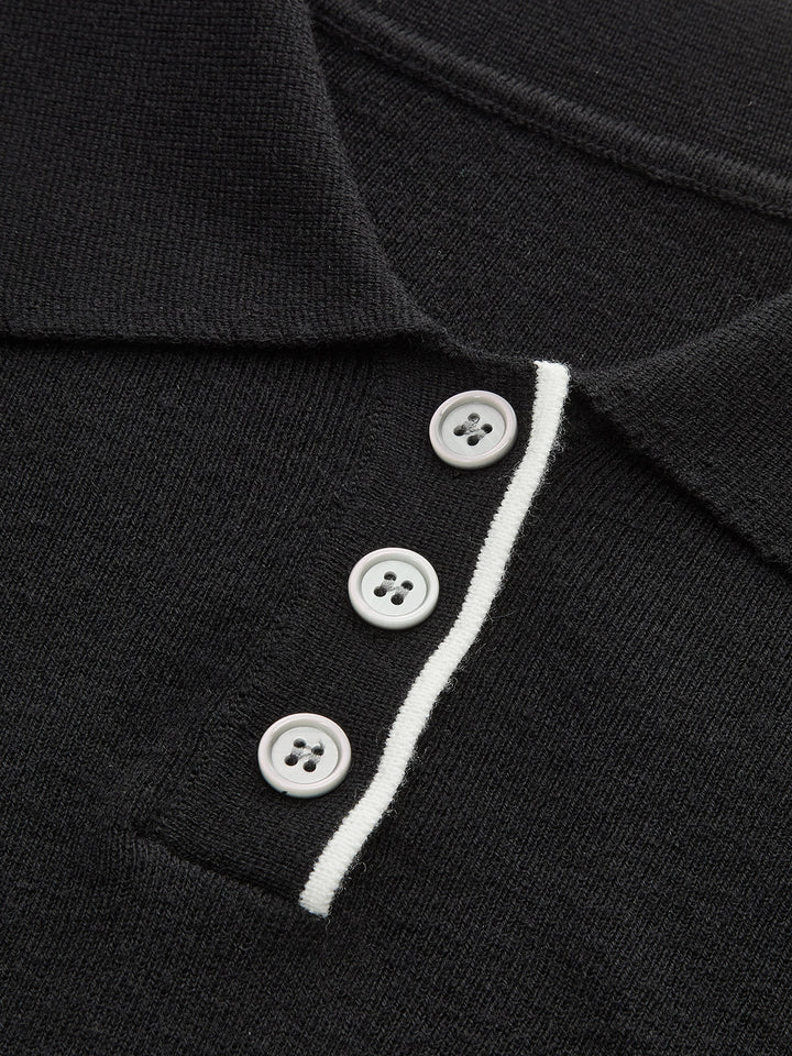 Asymmetric Contrast Trim Wool Blend Cropped Polo Top