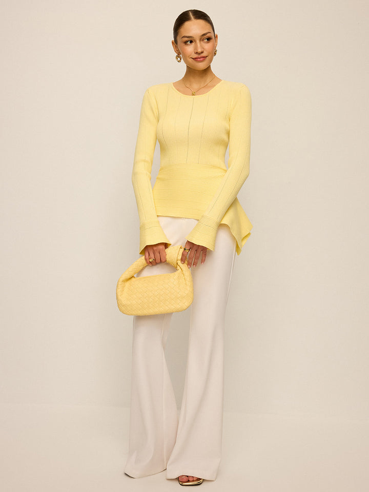 Asimetrik Etek Ucu Geniş Kollu Delikli Kazak