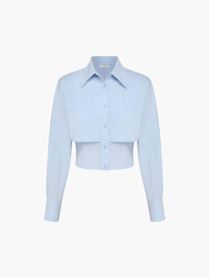 Bebek Mavisi Açık Yaka Çift Katlı Kırpılmış Gömlek
