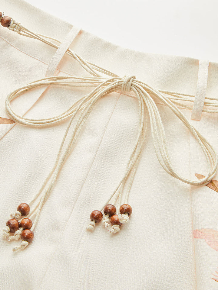 Kemerli Tropikal Desenli Orta Bel Şort