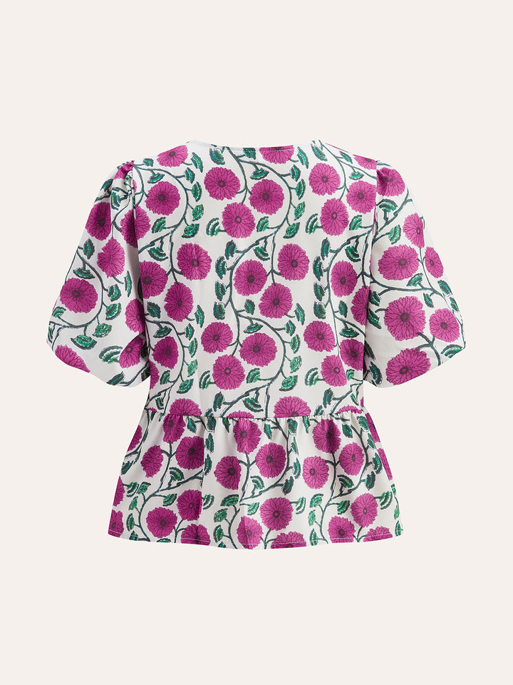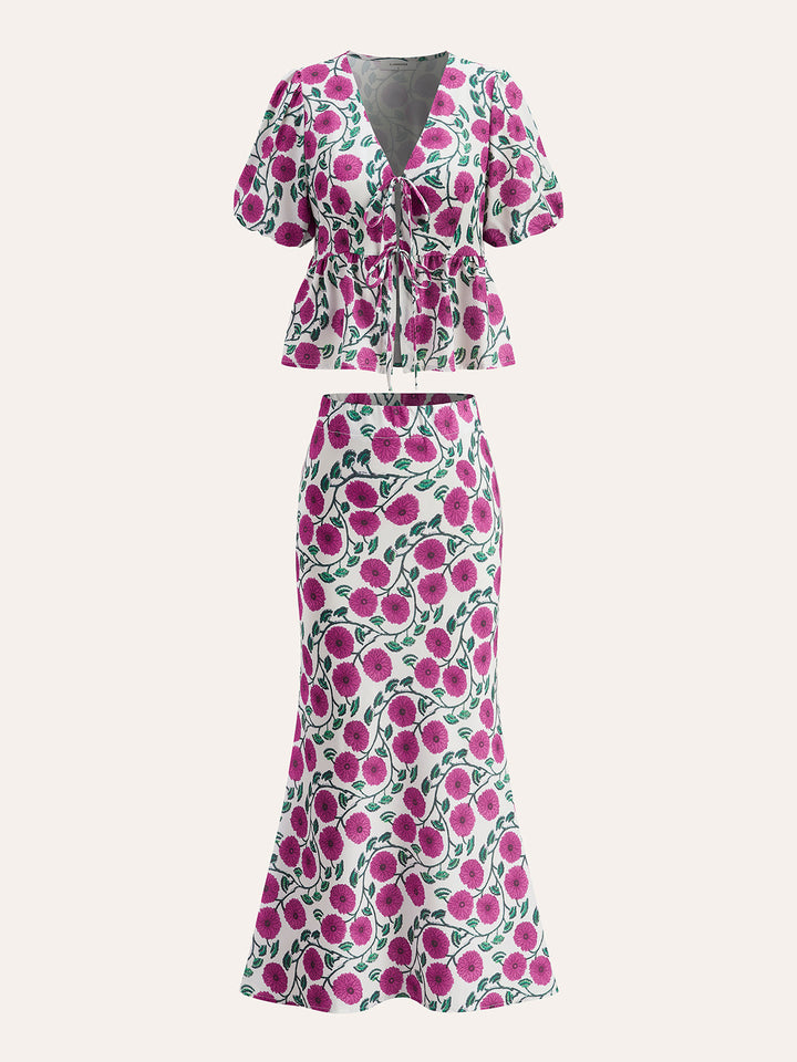 Boho V Yaka Bağcıklı Puf Kollu Etek Takımı