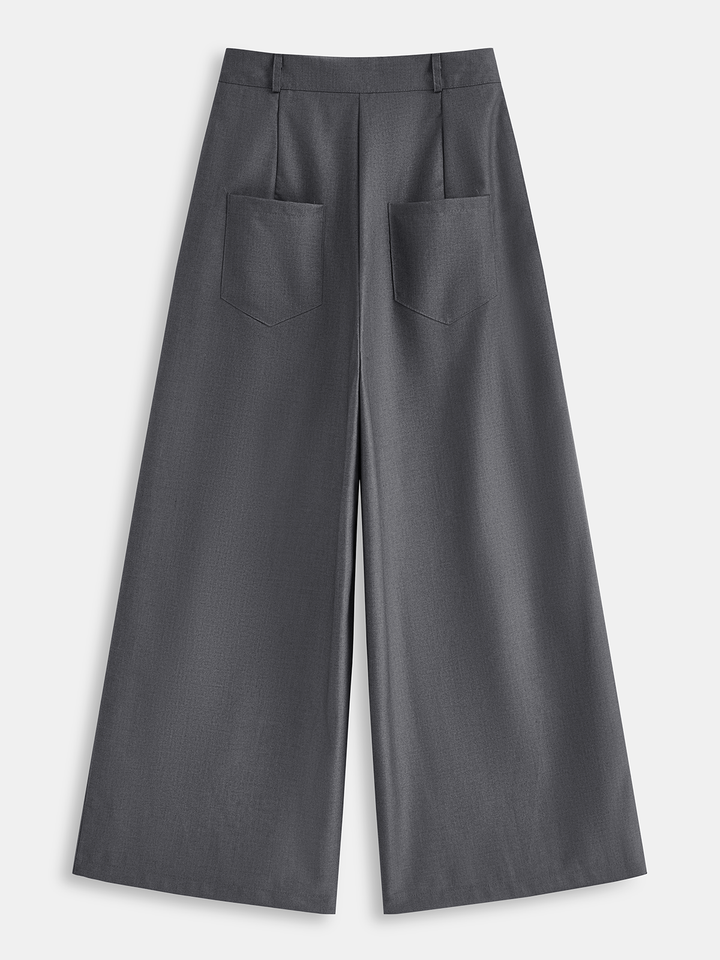 Önü Düğmeli Yüksek Belli Geniş Paça Pantolon
