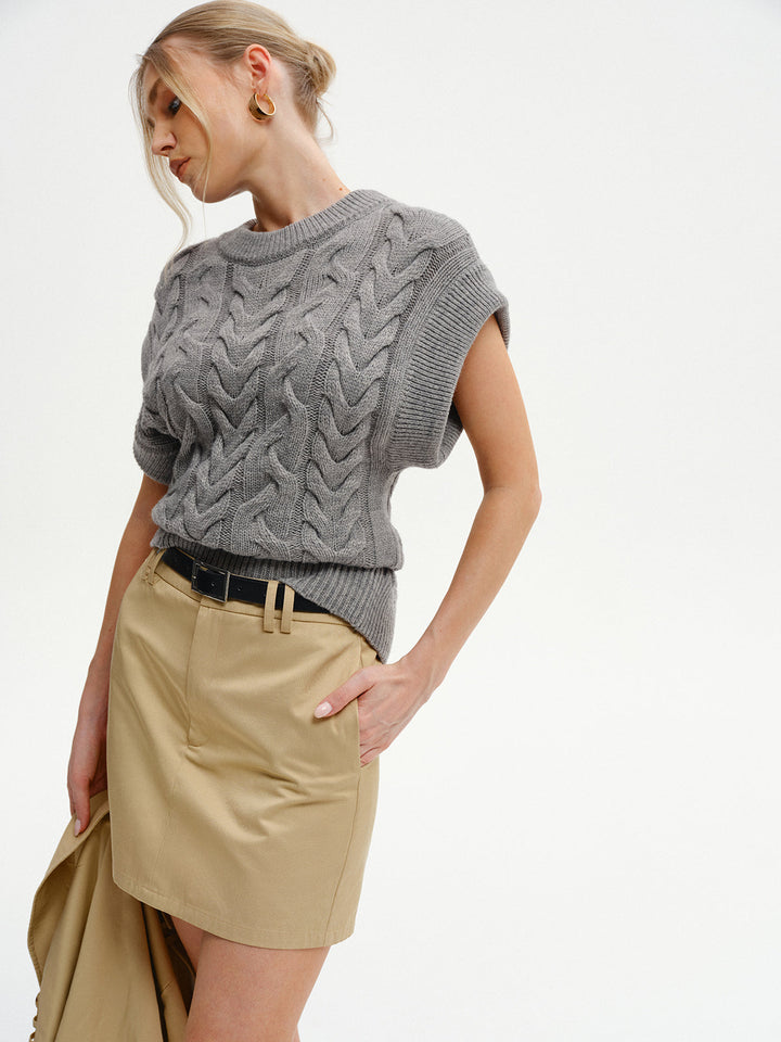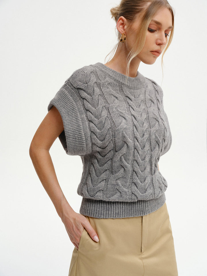 Kablo Örgülü Kısa Kollu Kazak Yelek