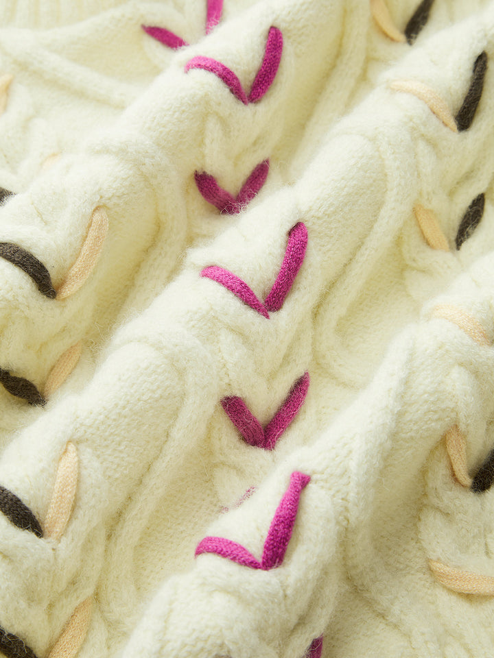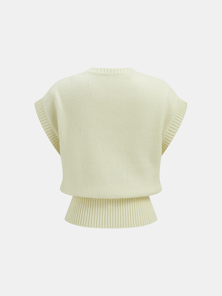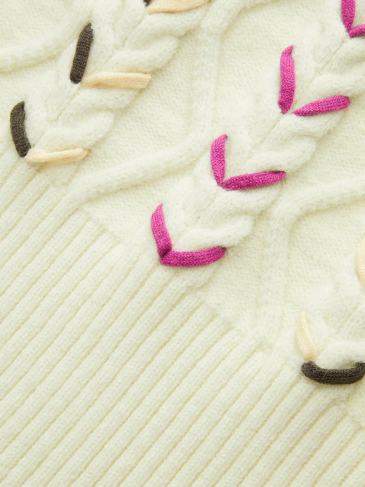 Kablo Örgü Kontrast Dikişli Kazak Yelek