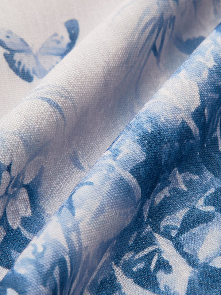 Bağcıklı Renkli Blok Çiçek Desenli Elbise