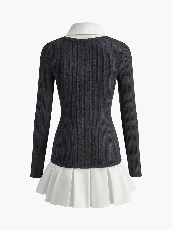 Renk Bloklu Panel Yaka Örgü Elbise