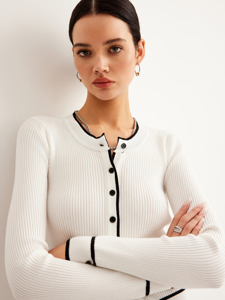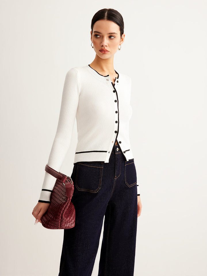 Kontrast Bağlamalı Ribana Düğmeli Hırka