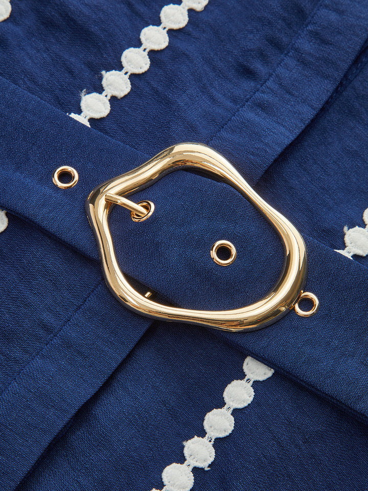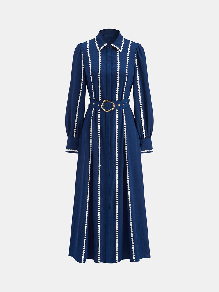 Kontrast Dantel Kenarlı Kemerli Gömlek Elbise