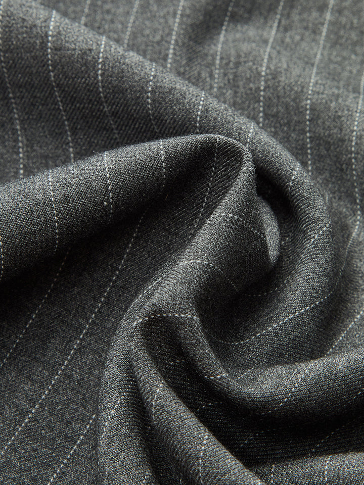 Kontrast Volanlı Bel Bantlı İnce Çizgili Pantolon