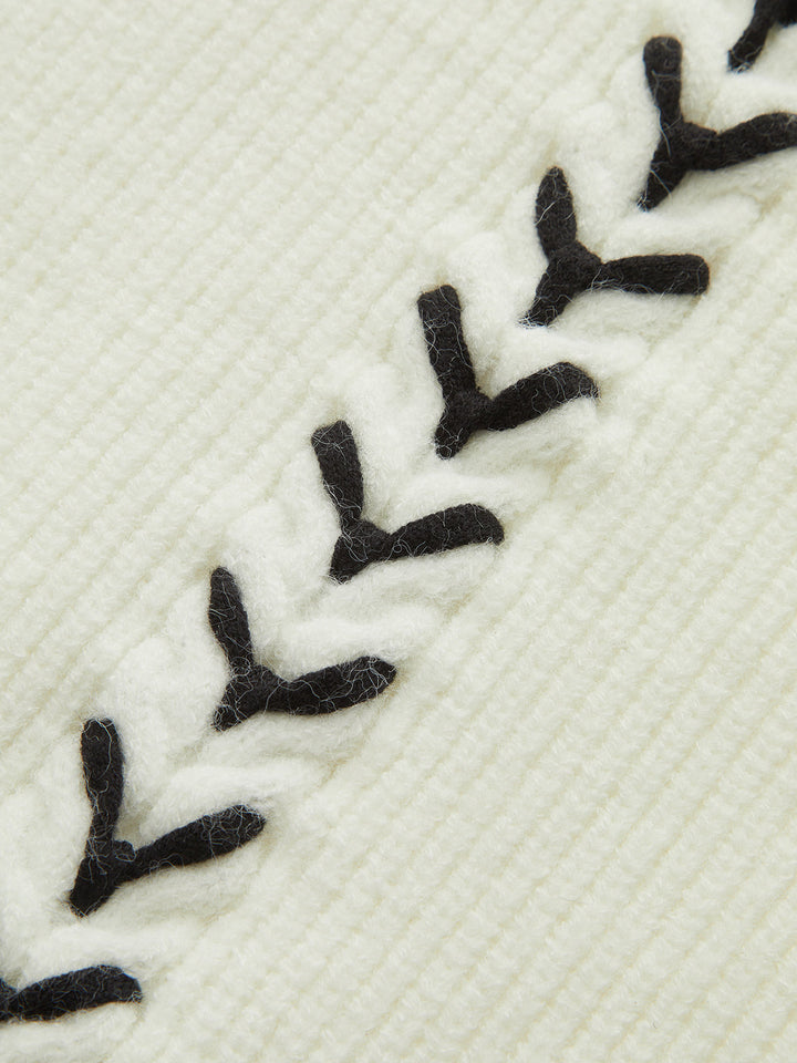 Kontrast Dikişli Polo Yaka Kablo Örgü Üst