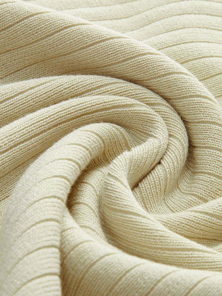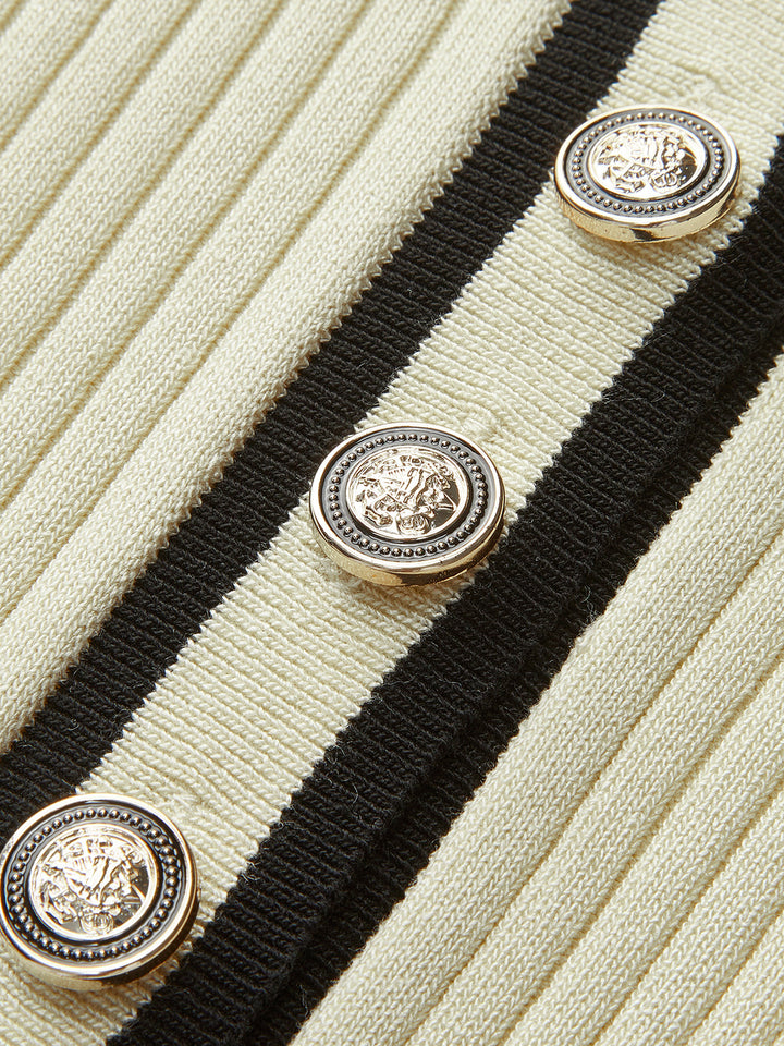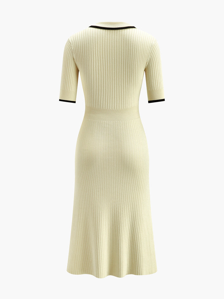 Kontrast Kesim Yakalı Ribana Örgü Kısa Kollu Midi Elbise