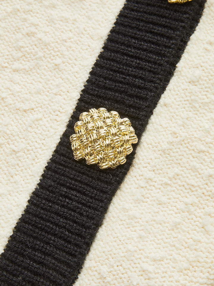 Kontrast Kesim Metal Düğmeli Dokulu Örgü Yelek