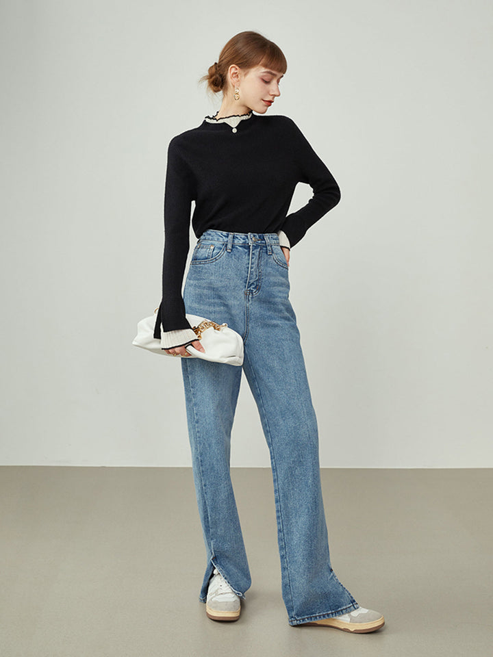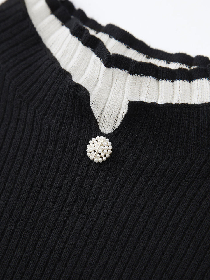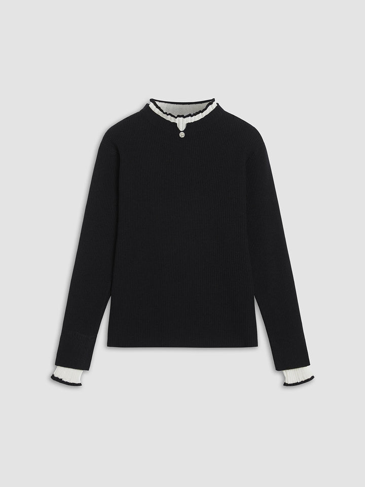 Kontrast Kesimli Balıkçı Yaka Örgü Üst
