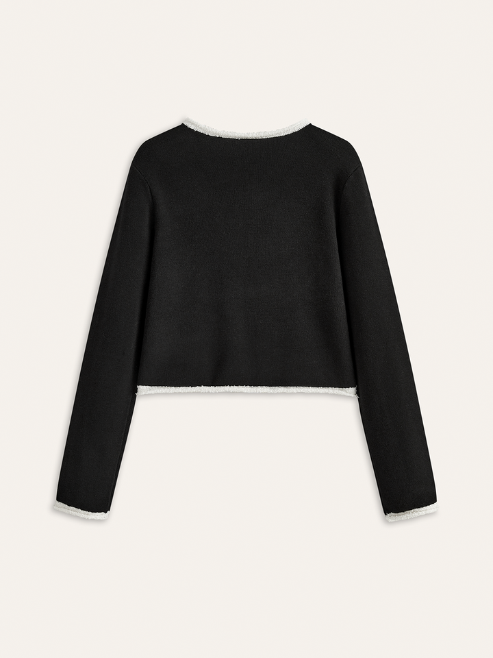 Kontrast Kenarlı Yün Karışımlı Hırka