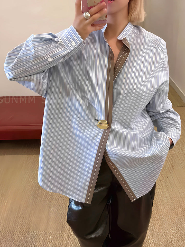 Pamuklu Kontrast Kesim İnce Çizgili Polo Tişört
