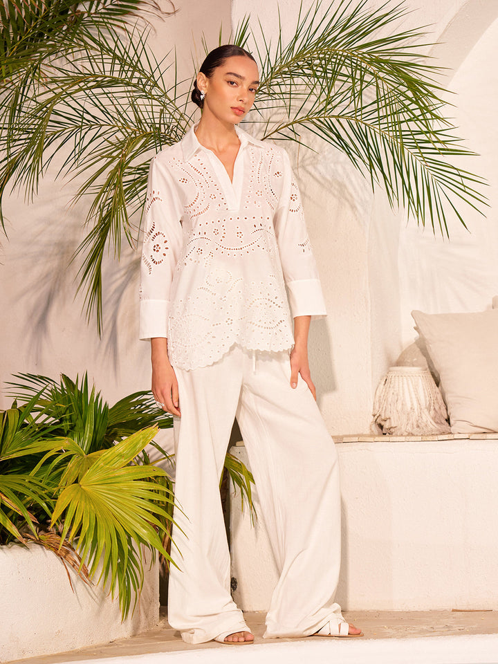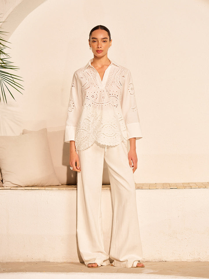 Pamuklu İğne Oyası İşlemeli Yarı Şeffaf Üst