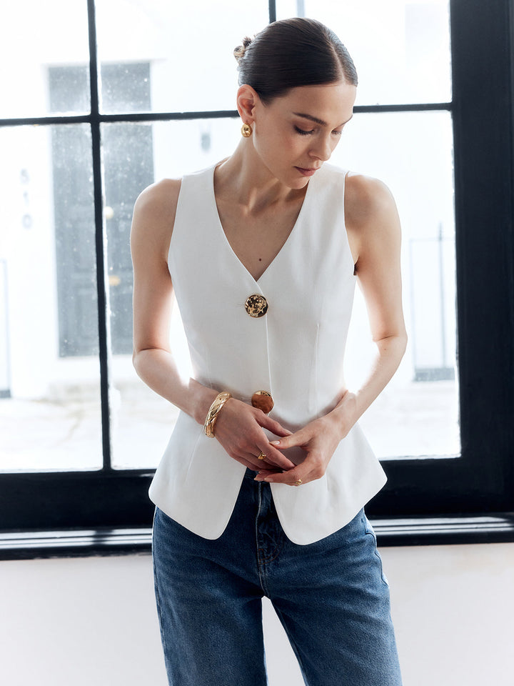 Pamuk ve Keten Metal Düğmeli Düz Yelek