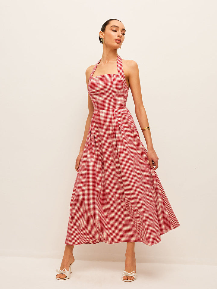 Pamuk ve Keten Ekose Askılı Elbise