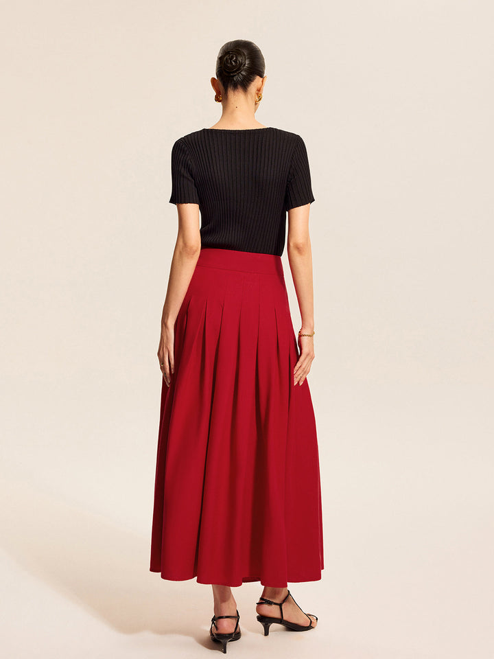 Pamuk ve Keten Pileli Yırtmaçlı Etek