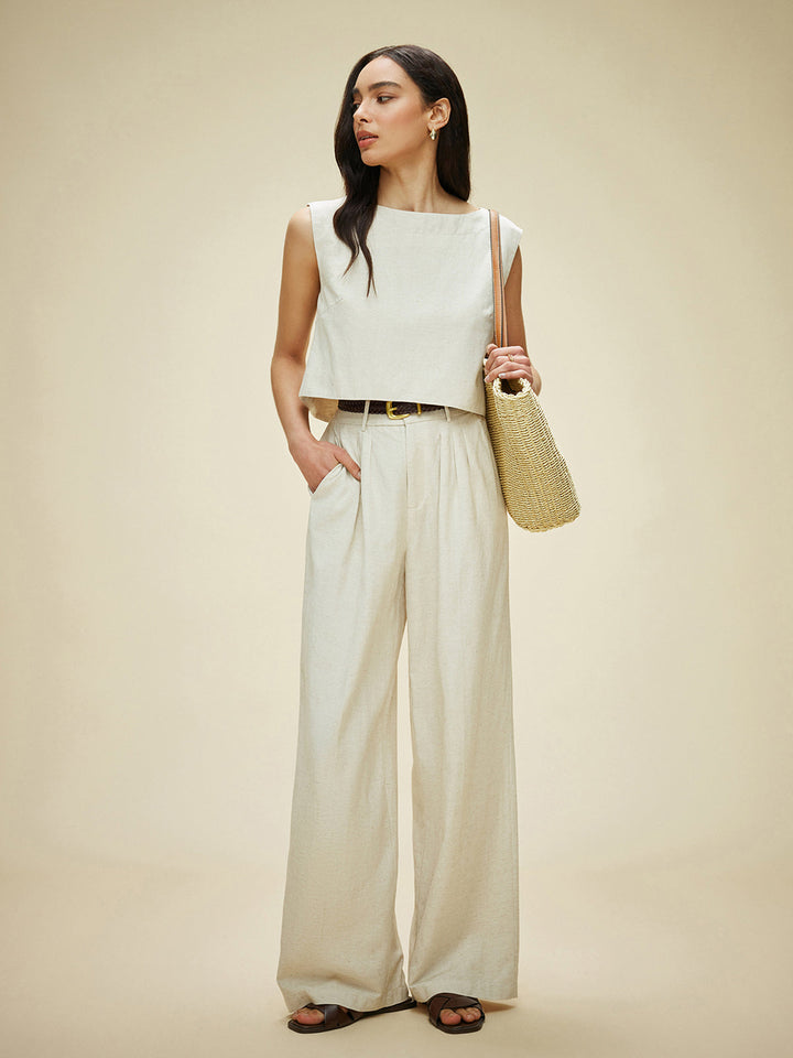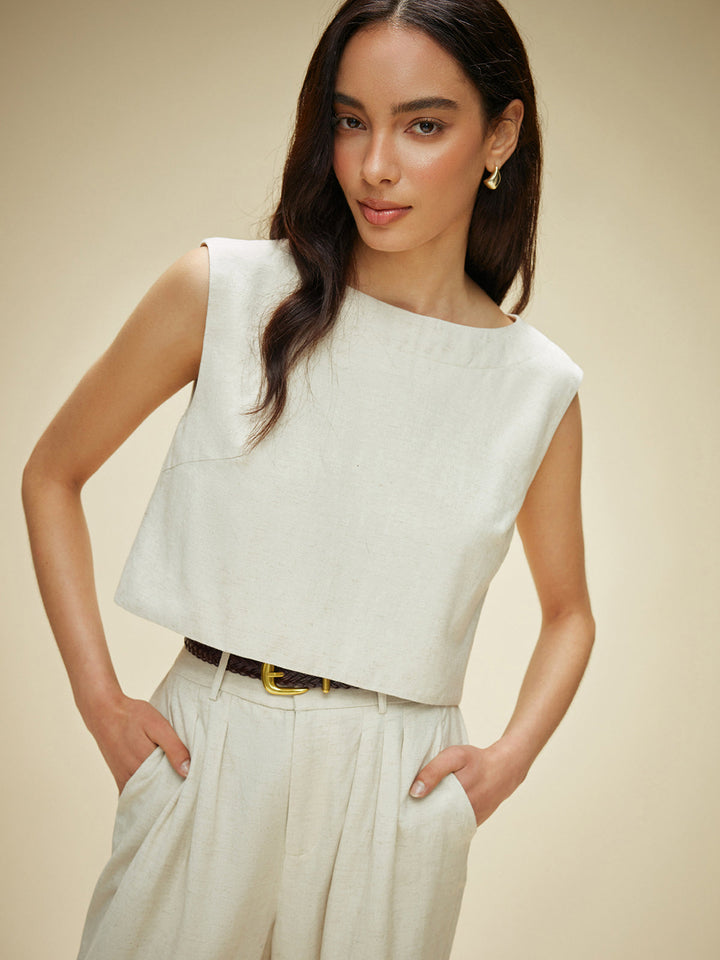 Pamuk ve Keten Kolsuz Cepli Pantolon Takımı Kemersiz