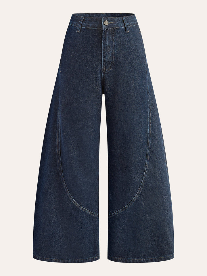 Pamuklu Orta Bel Geniş Paça Kot Pantolon