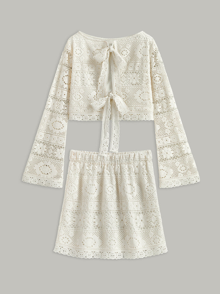 Tığ İşi Bağlamalı Yarı Şeffaf Etek Takımı