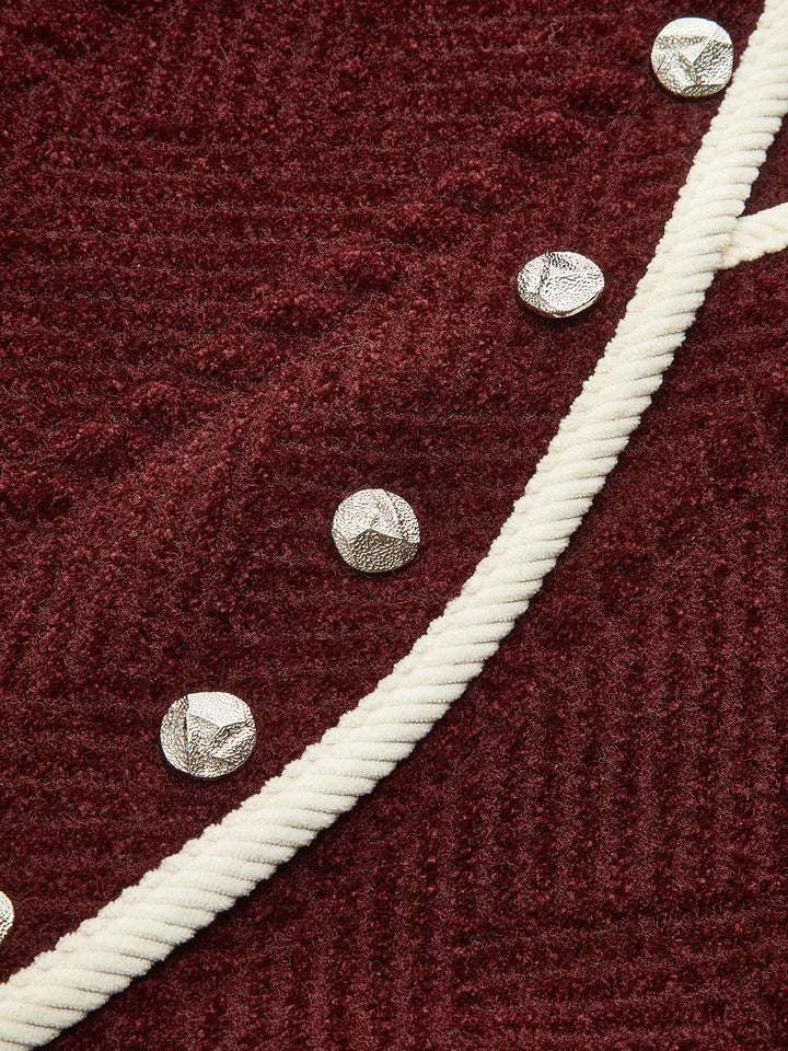 Kavisli Kontrast Kenarlı Şönil Karışımlı Yelek