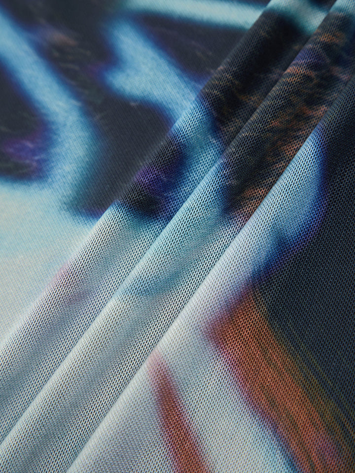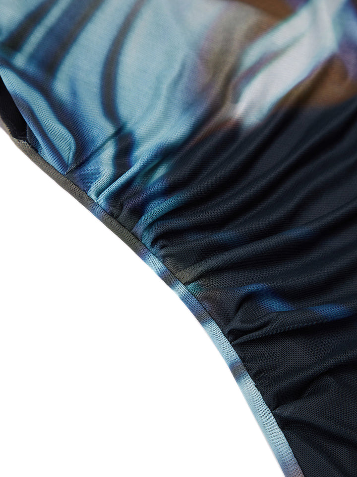 Cyber Waves Fileli Büzgülü Midi Elbise