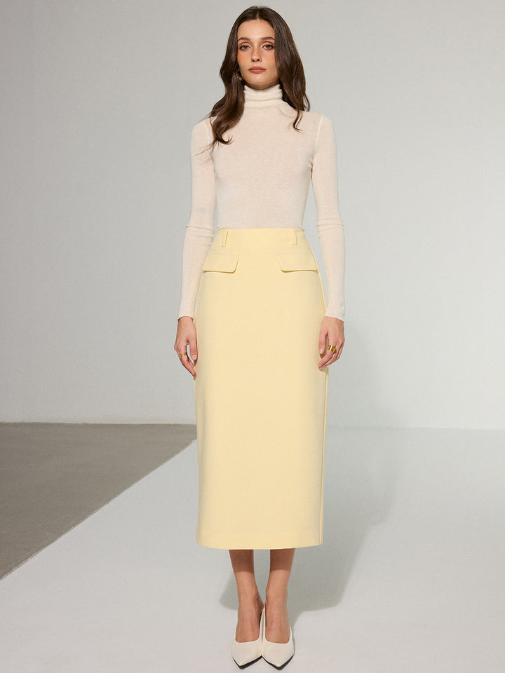 Dekor Cepli Arka Yırtmaçlı Midi Etek