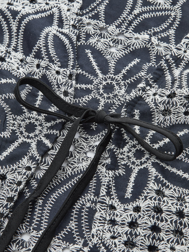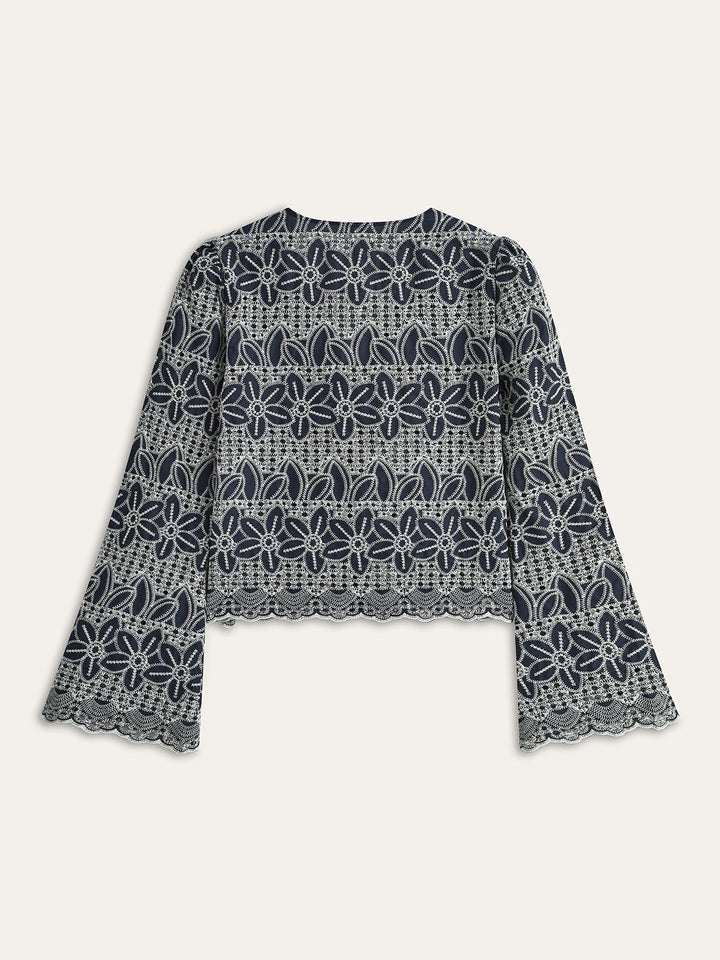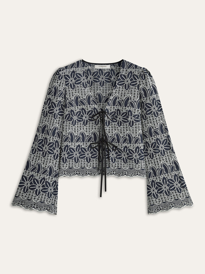 Önü Bağcıklı İşlemeli Bluz