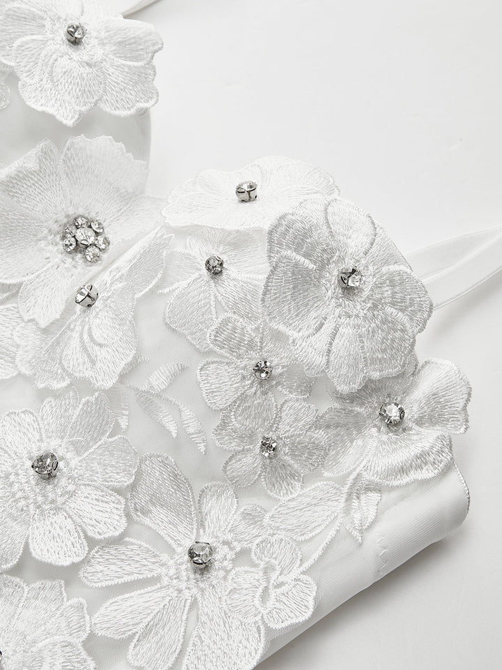Yarı Şeffaf İşlemeli Çiçek Desenli Kalp Korse