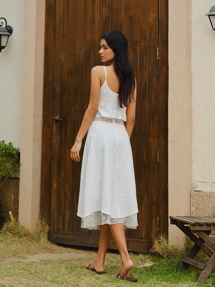 Etekli İşlemeli Bağcıklı Kısa Üst Takımı
