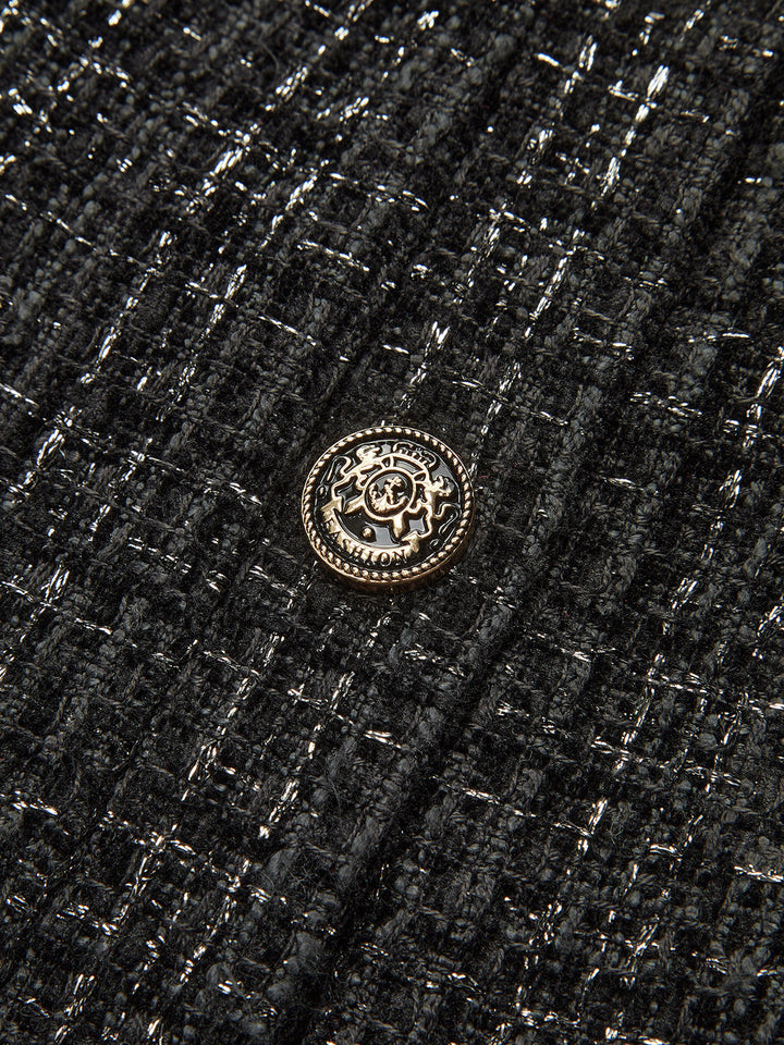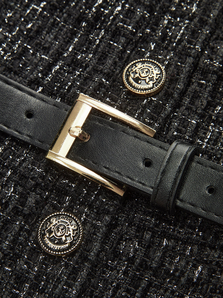 Sahte Kürk Yaka Tweed Kemerli Mini Elbise