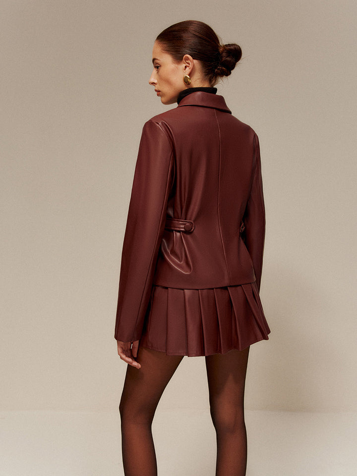 Suni Deri Pileli Etek Takımı