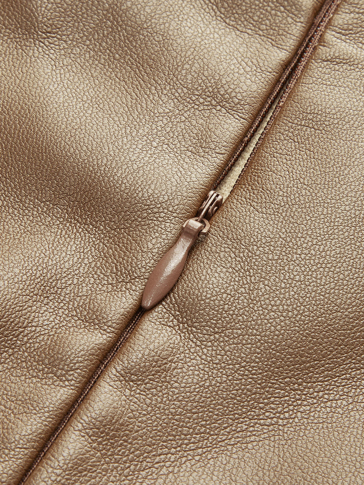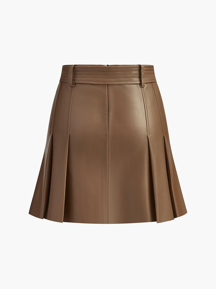 Kemerli Suni Deri Pileli Etek