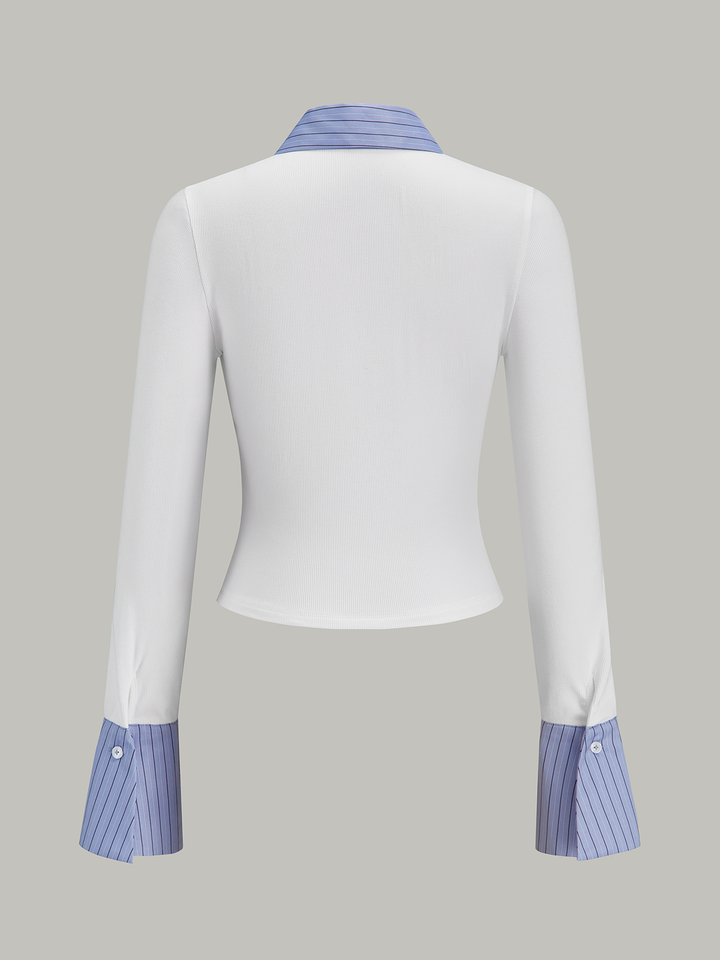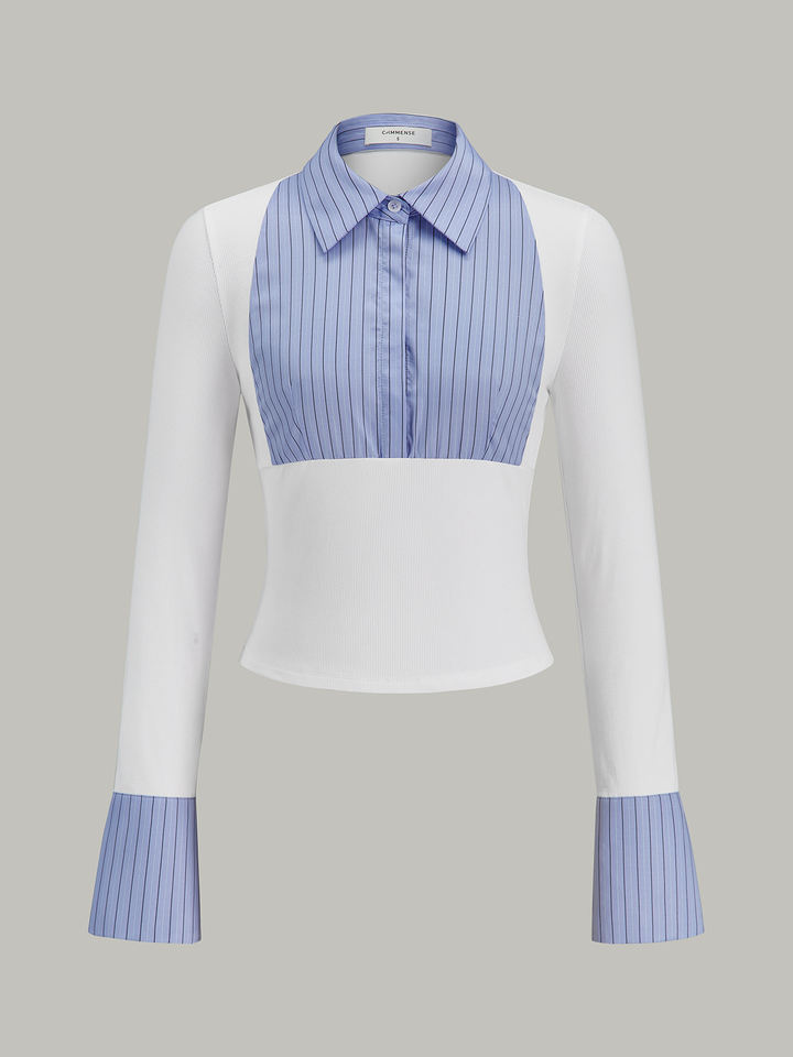 Geniş Manşet Çizgili Panelli Gömlek