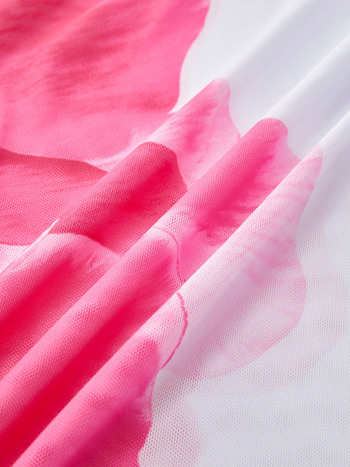 Yarı Şeffaf Etekli Çiçekli Bikini Takımı