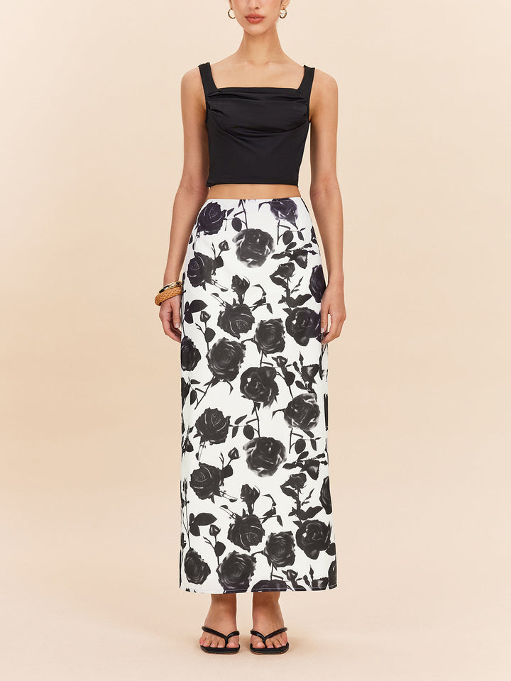 Çiçek Desenli Arka Yırtmaçlı Etek