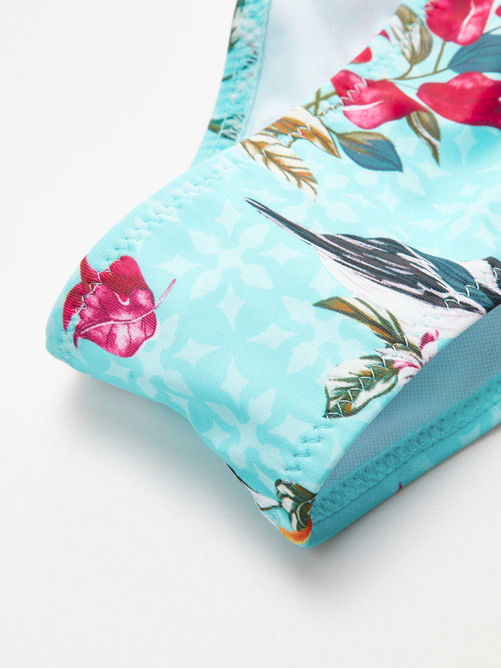 Çiçekli Desenli Bikini Takımı ve Üst Etek