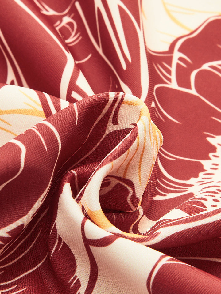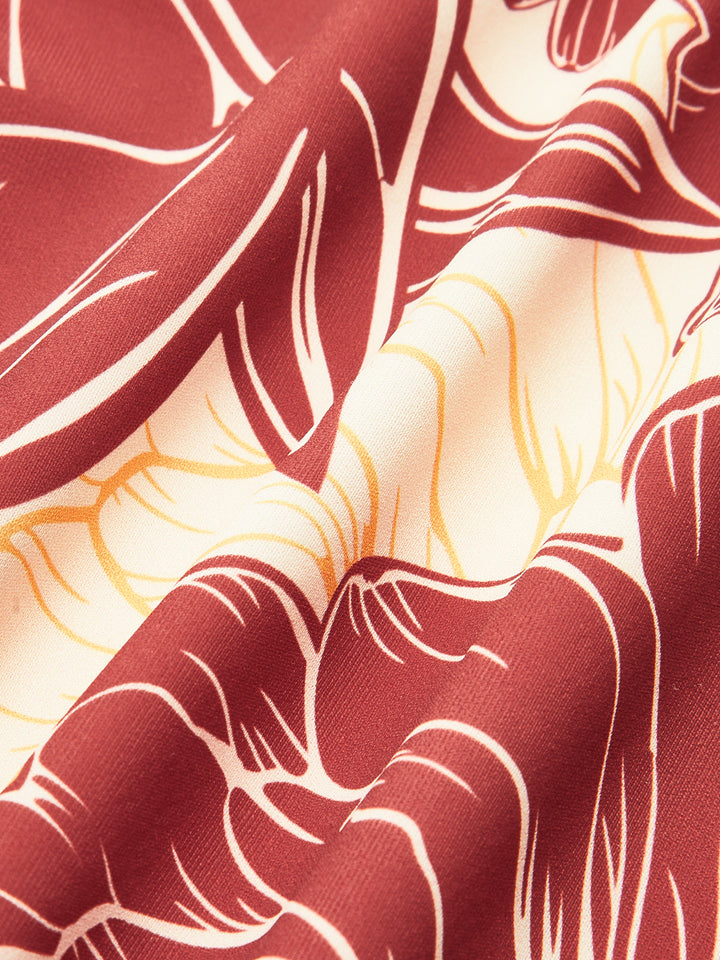 Çiçek Desenli Büzgülü Kesikli Tek Parça Mayo