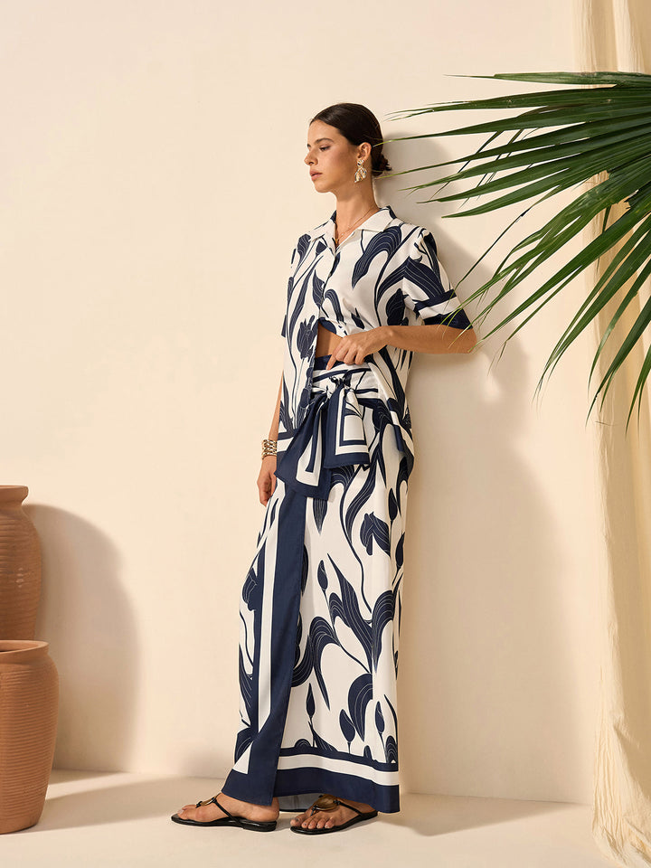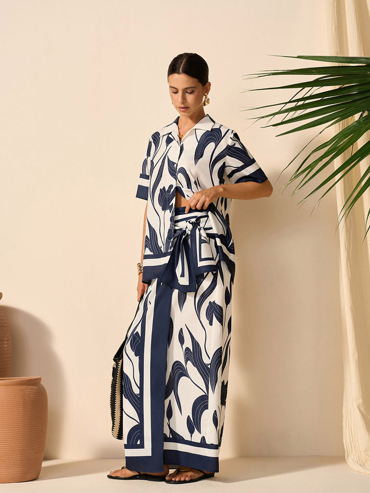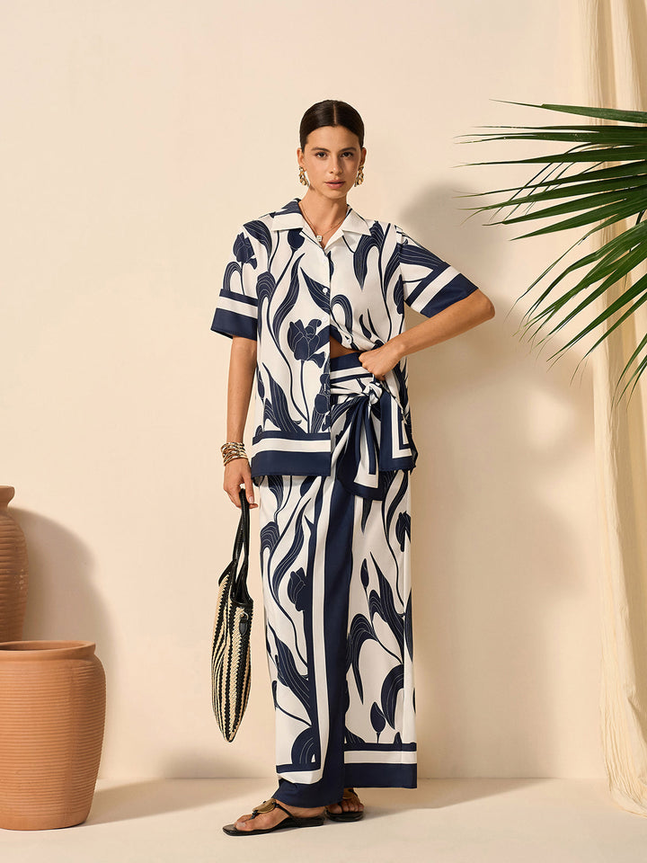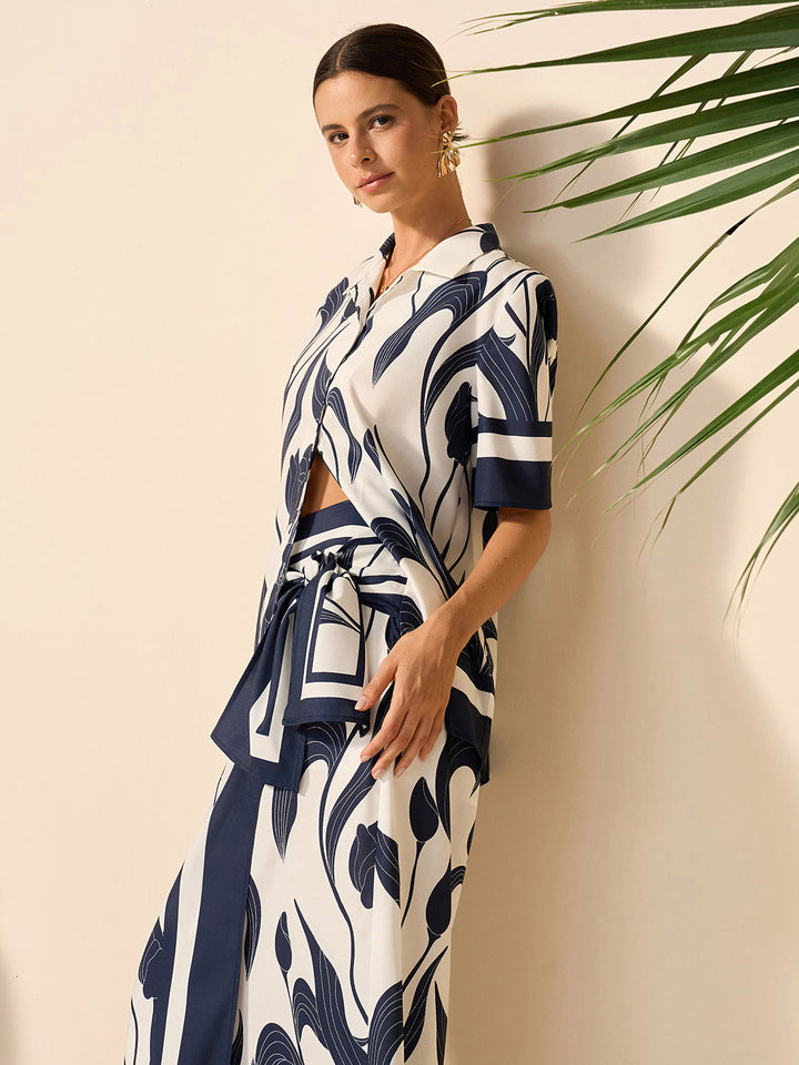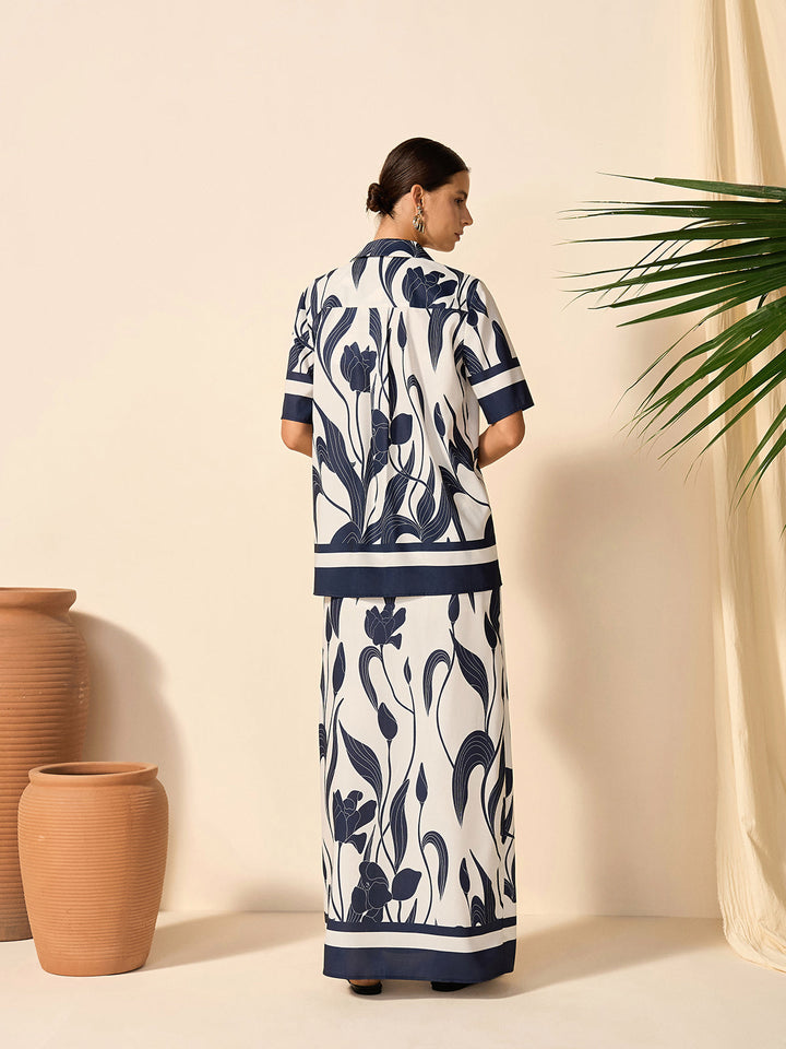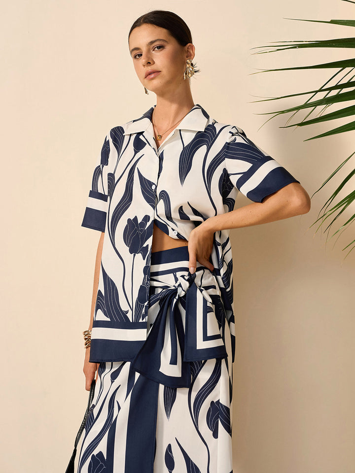Çiçek Desenli Yarı Şeffaf Düğmeli Gömlek