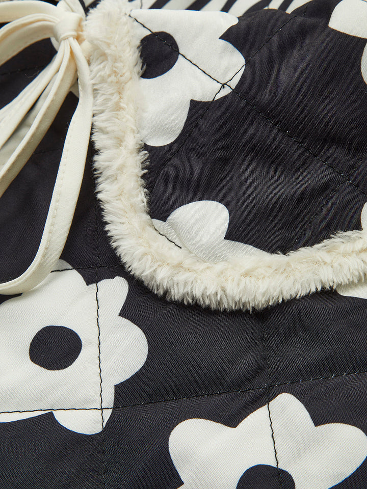 Çiçek Baskılı Bağcıklı Kışlık Mont