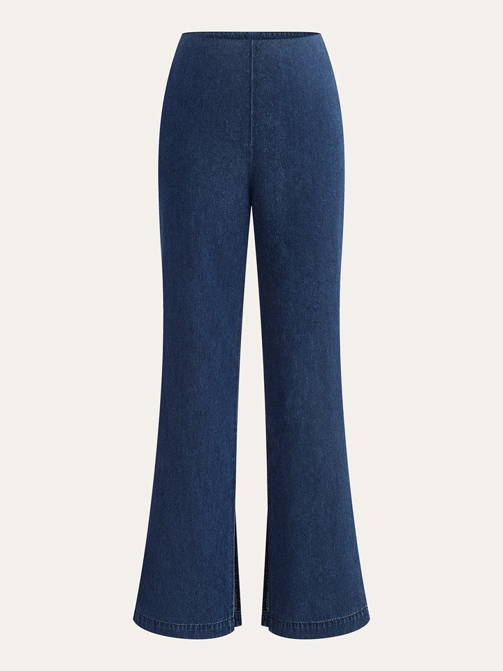 Önden Yırtmaçlı Yüksek Belli Kot Pantolon