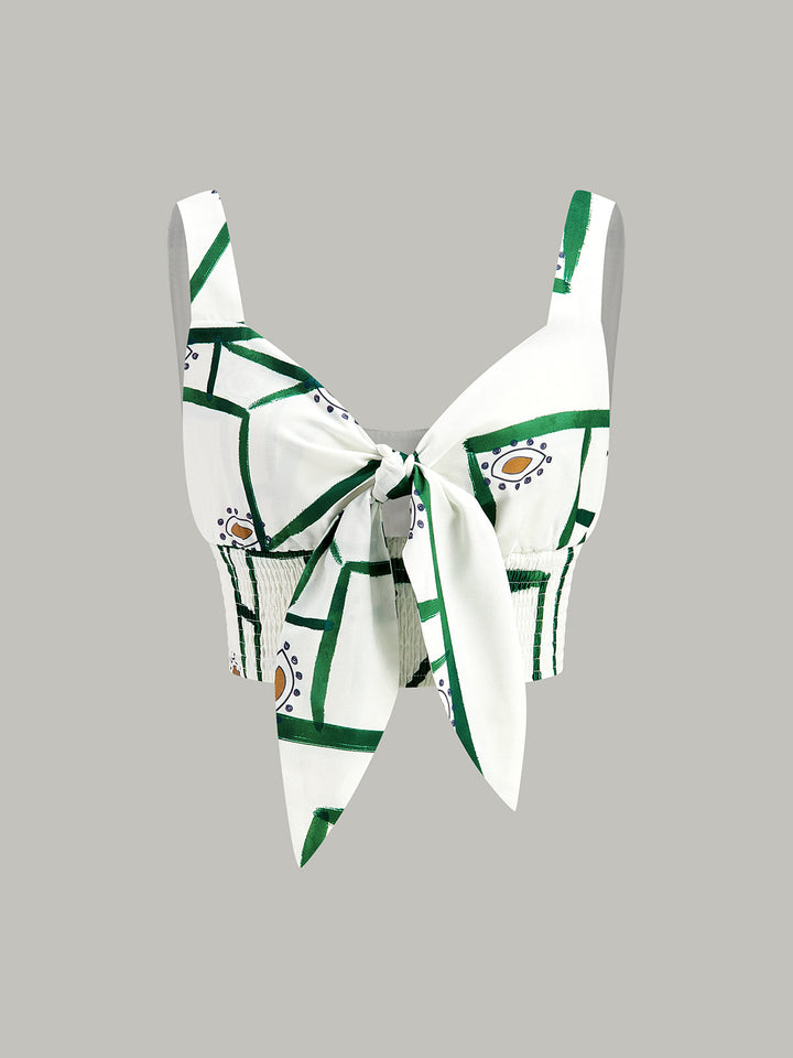 Önden Bağlamalı Askılı Üst ve Katmanlı Etek Takımı