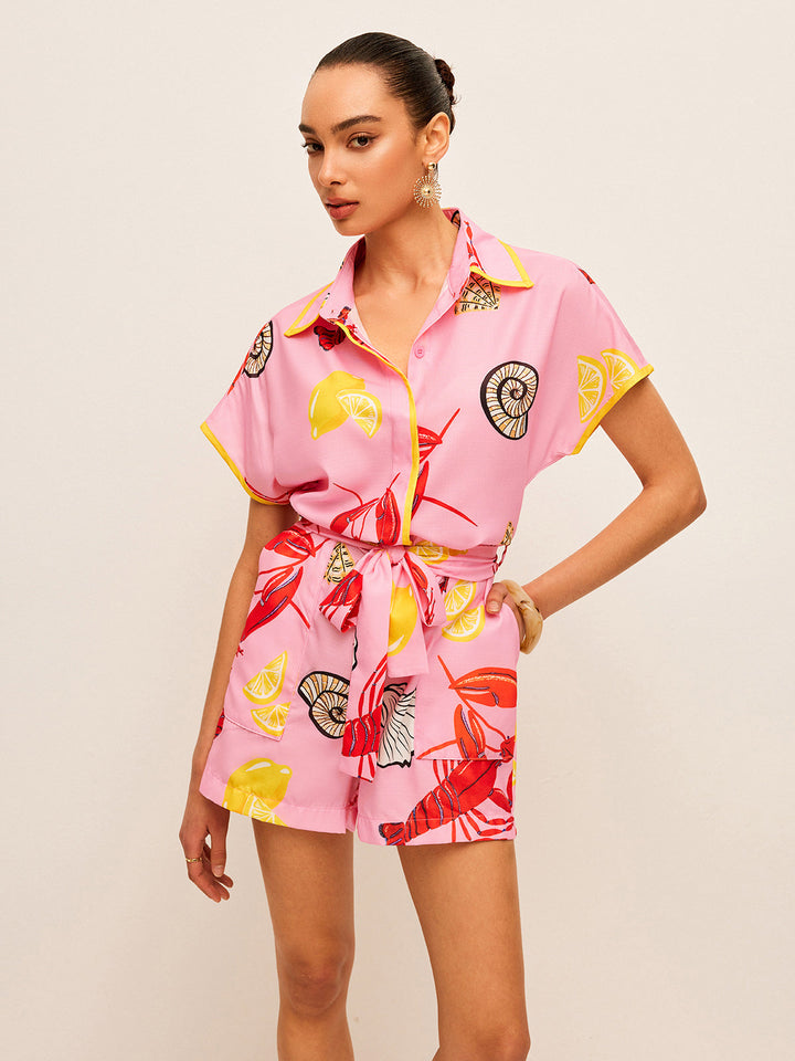 Meyve ve Kabuk Desenli Bağcıklı Tulum