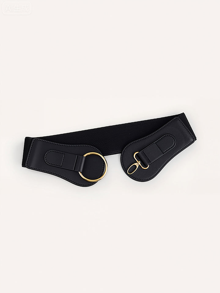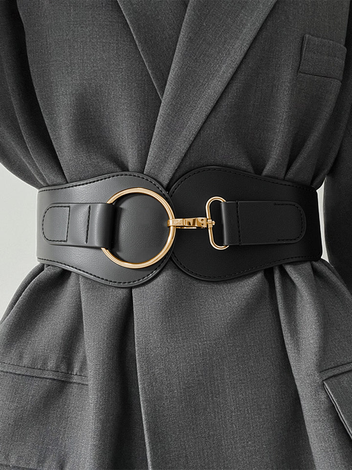 Altın Yuvarlak Tokalı PU Deri Geniş Kemer