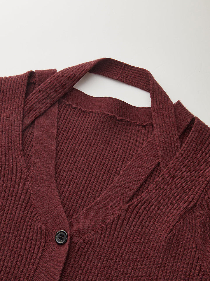 Halter Yaka Önü Düğmeli Kaburga Kazak
