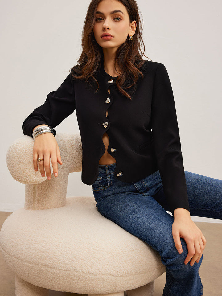 Kalp Düğmeli Normal Kesim Ceket